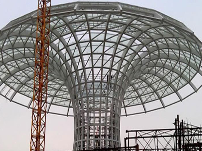 二、球形网架结构因其结构新颖,受力合理,自重轻、用钢量低等优点。如大型体育场馆球形秦皇岛螺栓球网架、公共场馆球形网架、电厂秦皇岛螺栓球网架、水泥工业球形网架、仓储物流球形网架、秦皇岛干煤棚工业球形网架、秦皇岛收费站秦皇岛加油站球形网架、展览中心、影剧院、商场、航站楼、候车厅、工厂秦皇岛车间、仓库、电视塔等球形螺栓球节点网架。国内球形网架结构主要分为:秦皇岛焊接球节点网架及螺栓球节点网架两种。螺栓球节点网架其构件工厂内加工量较大,现场安装便捷,适用于现场工期紧,秦皇岛施工条件、用电量受制约,网架形状复杂、秦皇岛杆件定位困难的异形结构。螺栓球节点球形网架系统基本由秦皇岛杆件、螺栓球、支撑支座等组成。按照节点形式可分为交叉秦皇岛桁架体系、四角锥体系、三角锥体系等。支撑方式多为固定支座支撑。对于大面积、大跨度及有特殊受力或伸缩要求的网架结构可采用橡胶支座、滑移支座、球铰支座等支撑形式,以满足结构自身的受力稳定、均衡,便于内力释放等设计要求。